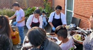 Der var mange hjælpende hænder, som forberedte bordene og grillmaskinerne. Til at grille udenfor var mig selv, Midie, og 2 nye venner fra Canada og deres familie, som lige er flyttet til Kolding.